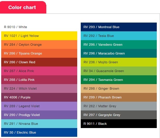 Каждый цвет был выбран основываясь на максимальной плотности пигмента, яркости и стойкости к УФ-излучению на солнце.